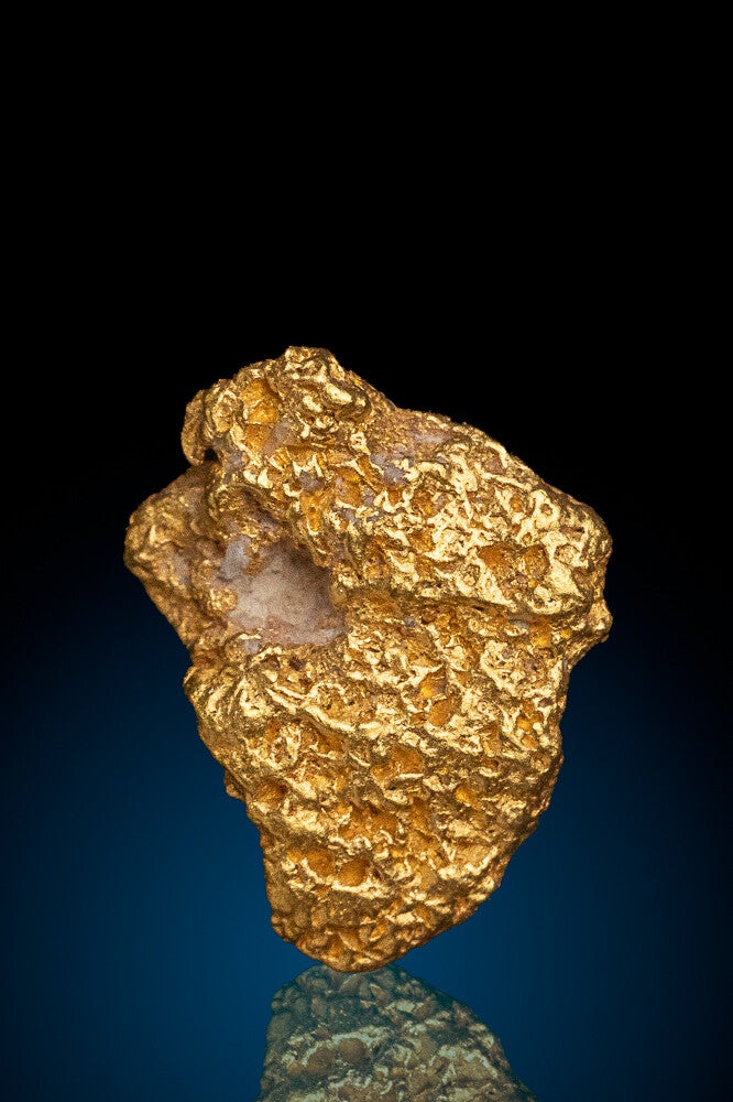 Description : Nugget massif texturé, avec or cristallisé sur une matrice rocheuse. Très beau relief, brillant spectaculaire, parfait pour collection haut niveau.